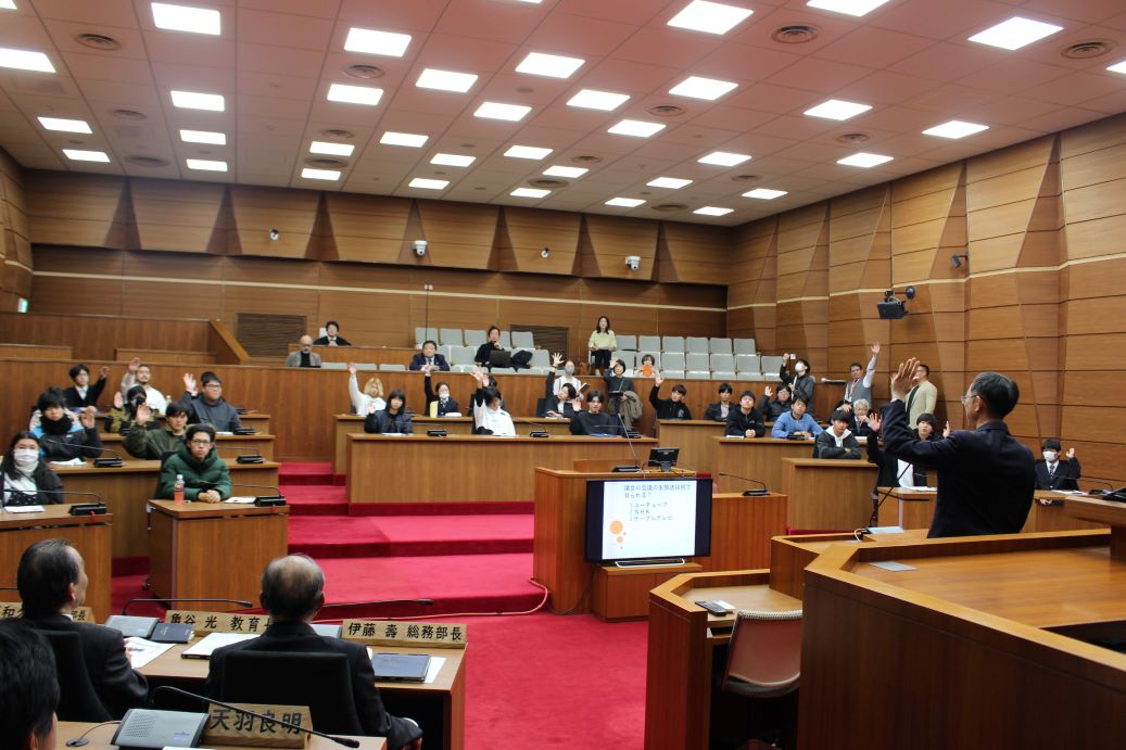 市内の通信制高校サポート校である、令和さくら高等学院の生徒さんを議場にお招きし、市議会の疑似体験をしていただきました。