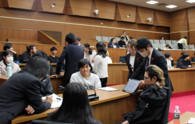 第2部では、代表生徒が議長を務め、模擬議会を体験し、議員も交えたグループディスカッションの後、討論、採決までを体験しました。