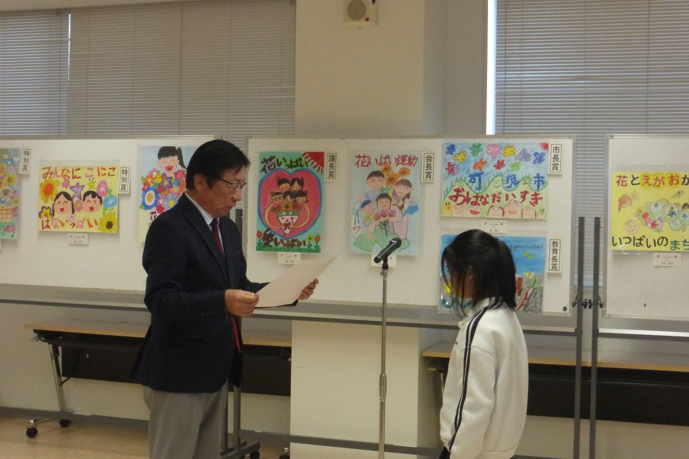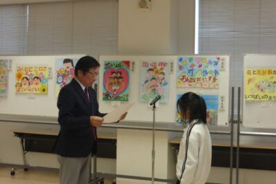 12月26日、花いっぱい運動ポスターコンクール表彰式に議長が出席しました。
